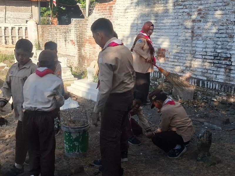 Dengan semangat gotong royong dan kepedulian terhadap lingkungan, para siswa membersihkan area makam dari rumput liar, sampah daun, serta memperindah sekitar makam agar tampak rapi dan bersih. Kegiatan ini juga menjadi ajang pembelajaran karakter, menumbuhkan rasa hormat kepada para leluhur, serta memperkuat nilai-nilai disiplin, tanggung jawab, dan kebersamaan yang menjadi bagian dari jiwa Pramuka.
